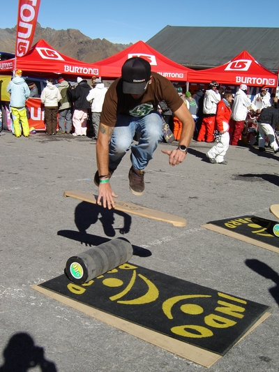 Snowboarder Snowboarder haben sich als wahre Künstler auf dem INDO Board mehrmals bewiesen. Naturgemäß können Snowboarder die meisten Tricks! Schaut euch mal die Bilder an! Ob Slopestyle- Spezialist, Jibber oder Piperipper wird das INDO Board als Trainingsgerät dich auf ein höheres Level pushen. Die Sportart Snowboarden besteht aus dynamischen, statischen, axialen und rotatorischen biomechanischen Komponenten und die sich daraus ergebenden Belastungen für den Stamm, insbesondere die Wirbelsäule und die Stützmuskulatur sollte man Aufmerksamkeit geschenkt! Die Absolvierung eines Ausgleichstrainings zur muskulären Stabilisierung wird den Intensivsnowboardtreibenden unbedingt empfohlen um einseitige Belastungen zu minimieren. Klarerweise ist Konditions- und Koordinationstraining auch eine Prophylaxe vor Sportschäden. INDO Board wird durch Blue Tomato bei Surf & Snowboard Veranstaltung unterstützt. INDO Board Film - nichts mit Schnee zu tun, ist aber egal!