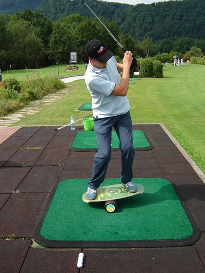 Der Golfspieler spielt auf einem der empfindlichsten Instrumente die es gibt: dem eigenen Körper! Wer ihn virtuos einsetzen will, der muss eine Menge dafür tun, seinen Körper bei den feinmotorischen Bewegungen so zu steuern, dass ein optimaler Erfolg gewährleistet ist. Dies erfordert eine gute Balance zwischen Kraft und Beweglichkeit, Spannungs- und Entspannungsfähigkeit, Reaktionsvermögen und Ausdauer. Gleichgewichtsschulung und kienästhetisches Training für Golfer und Golferinnen Bringt das was? Braucht man dass? Überprüft wurden diese Fragen im Rahmen einer Wissenschaftlichen Arbeit mit dem Ziel zu überprüfen, welche Wirkung ein kienästhetisches Training auf das Erlernen einer komplexen motorischen Bewegung hat. Sportart Golf. Das kienästhetische Training beinhaltete eine gezielte Schulung der Schwerpunkte Gleichgewichtsregulation, Körperwahrnehmung im Raum und Wahrnehmung aktiver und passiver Kräfte. Hierdurch sollte das kienästhetische System gezielt angesprochen und eine verbesserte Wahrnehmung des Schülers erreicht werden. In die Studie wurden 86 Golfanfänger einer Golfschule einbezogen. 56 Teilnehmer/-innen (27 weiblich, 29 männlich) bildeten die Kontrollgruppe, 30 Teilnehmer/-innen (17 weiblich, 13 männlich) die Experimentalgruppe. Eine exakte Splittung in zwei gleich große Gruppen war im Voraus nicht möglich, da nicht abschätzbar war, wie sich die Anmeldezahlen der Anfängerkurse in der Saison entwickeln würden. Das zusätzliche kienästhetische Training der Experimentalgruppe umfasste 30 Minuten und fand jeweils vor der üblichen Kurseinheit statt. Jeder Anfängergolfkurs umfasste wiederum 8 x 2 Stunden und hatte maximal 6 Teilnehmer. Am Ende des Kurses wurden alle Kursteilnehmer, unabhängig ob Kontroll- oder Experimentalgruppe, einem Test im Putten, Chip-Shot, Pitch-Shot und Approach-Shot unterzogen. Darüber hinaus wurde bei 23 Probanden (15 mit und 8 ohne ein kienästhetisches Training) der Golfschwung mittels biomechanischer Analyse untersucht. Diese Aufnahmen wurden zur Quantifizierung des Bewegungsflusses herangezogen. Die Resultate der Untersuchung zeigen, dass das kienästhetische Training beim Erlernen des Golfschwungs einen besseren und stabileren Golfschwung bewirkt. Dieses zeigte sich anhand der signifikant besseren Testergebnisse des Feldtests im Chip-Shot, Pitch-Shot und Approach-Shot. Es ist zu erkennen, dass die Experimentalgruppe ihre Golfschwünge im Abschwung, aber auch in der Gesamtbewegung tendenziell fließender ausführte, als die Kontrollgruppe. Sowohl im Feldtest, als auch bei der Bewegungsanalyse war eine deutlich größere Streuung der Ergebnisse der Kontrollgruppe zu verzeichnen, was den Rückschluss auf eine stabilere Bewegungsausführung der Experimentalgruppe zulässt. Quelle: Einfluss eines kienästhetischen Trainings auf das Erlernen des Golfschwungs von Karola-Viktoria Stolpe. Universität der Bundeswehr München: Fakultät für Pädagogik 2002